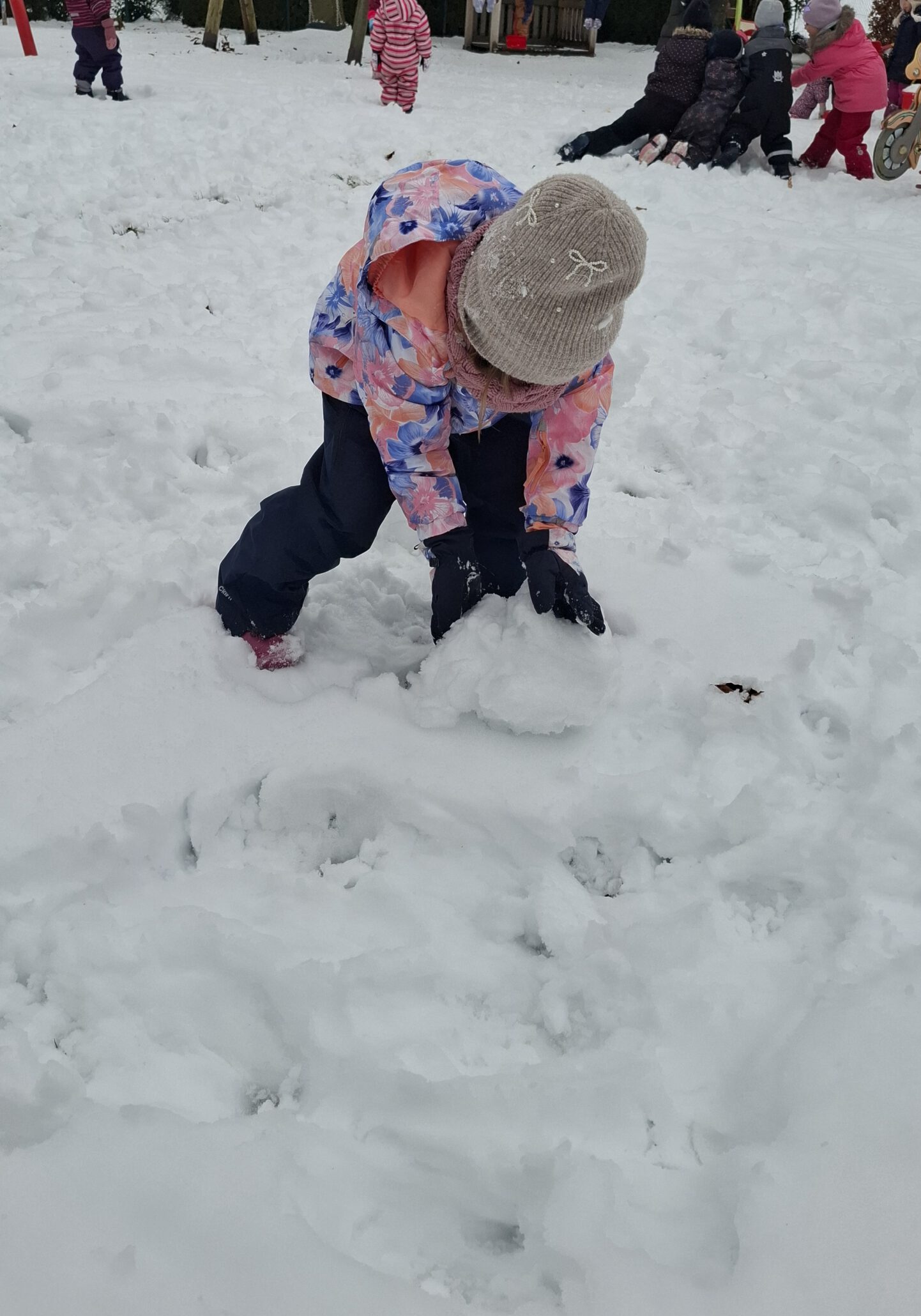 Die Freude über den üppigen Schnee Ende Januar war riesig bei den Kindern! Natürlich ging es nach der Brotzeit raus in den Schnee und es wurde einige Schneemänner gerollt und vollendet. Aber auch eine kleine Schneeballschlacht wurde veranstaltet. So viel Schnee ist schon was Besonderes. Bis heute kann man die unteren Kugeln der Schneemänner noch im Garten sehen.